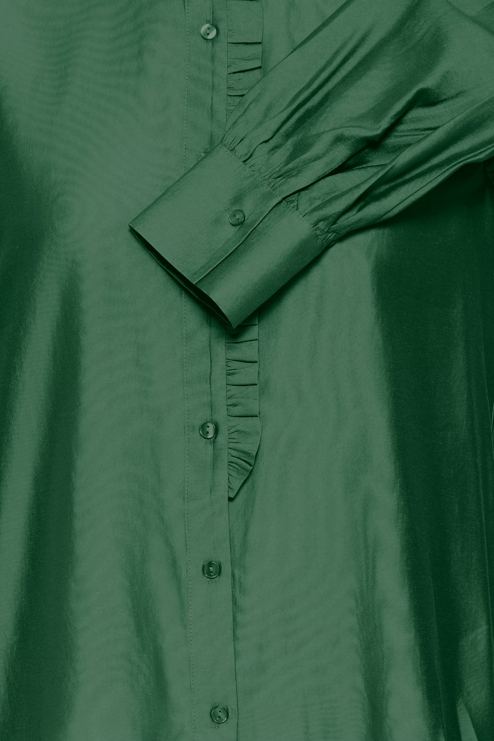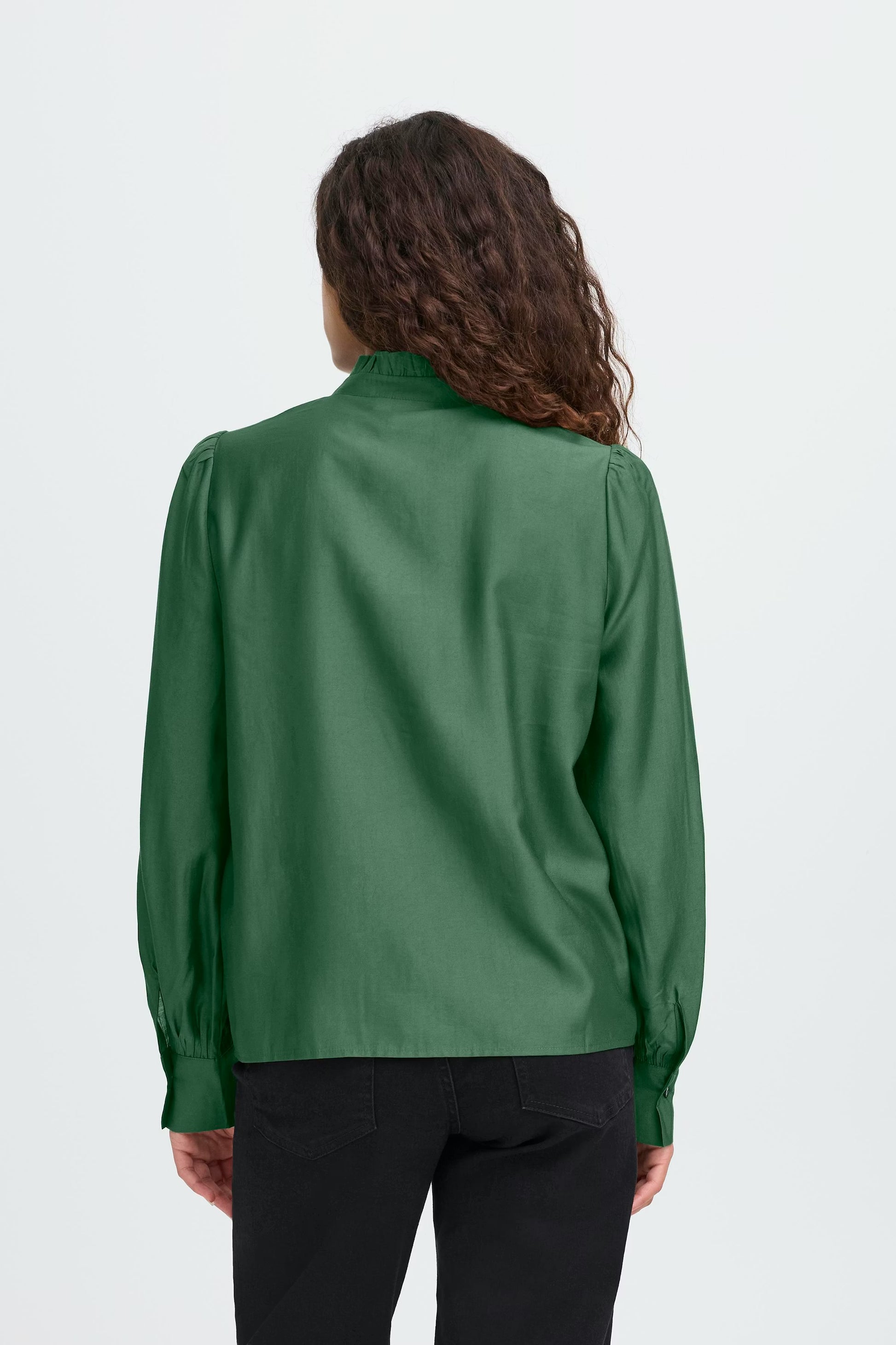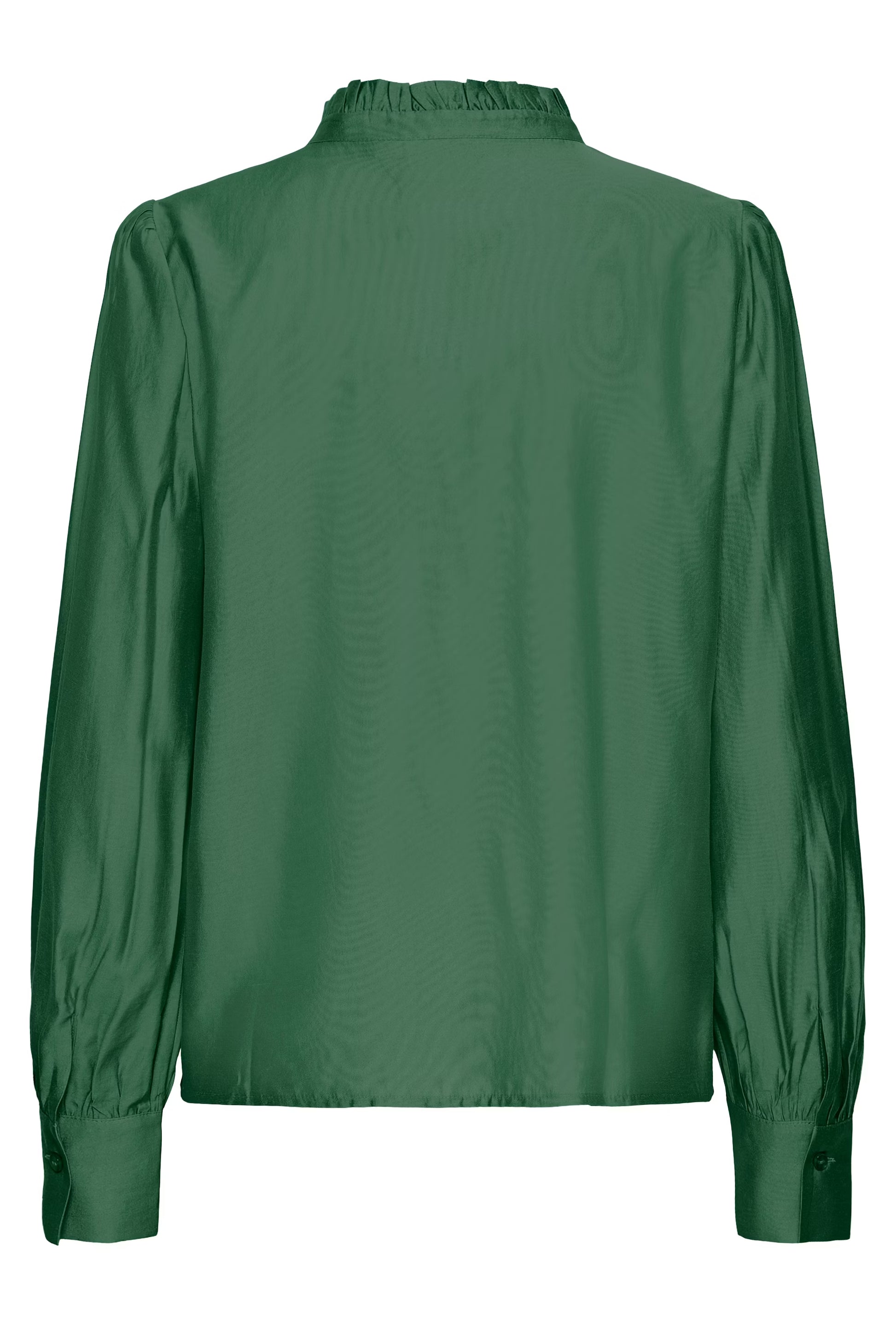 - Elegant shirt with a high neckline and delicate ruffle detail.